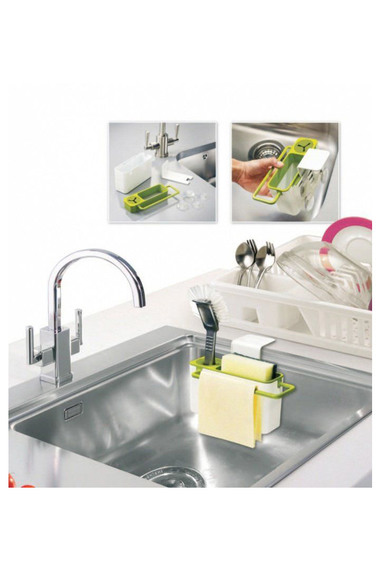 Органайзер для раковины – удобное и вместительное приспособление для хранения различных принадлежностей для мытья посуды и столешниц. Он плотно крепится на стенку раковины при помощи сильных присосок, таким образом, все необходимое для мытья посуды оказывается в одном удобном месте.